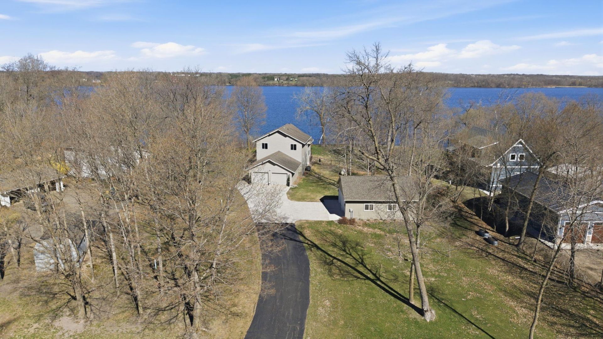 Meticulously maintained 5 bed, 3 bath home on over an acre lot along Sauk Lake, offering 125 feet of lakeshore and exceptional sunset views. This beautifully cared for property features mature trees, a large deck, and a fire pit area, perfect for enjoying lakeside living. Easy access to the water with stairs and an electric cart system. The home offers a bright, open main level with a spacious kitchen, dining, and living area highlighted by large windows and a cozy gas fireplace. Also on the main level are two bedrooms, a full bathroom, and convenient laundry. The upper level includes two additional bedrooms and a 3/4 bath, all with stunning lake views. The finished lower level features a family room, bedroom, full bathroom, and an additional flex room. Additional highlights include a heated and air-conditioned 29x24 shop, a two stall insulated attached garage, and a new central air system. This property combines comfort, functionality, and incredible lakefront scenery, ready for you to enjoy year-round! Popular Sauk Lake offers multiple dining & bar options, a golf course, excellent fishing and endless shoreline to explore.