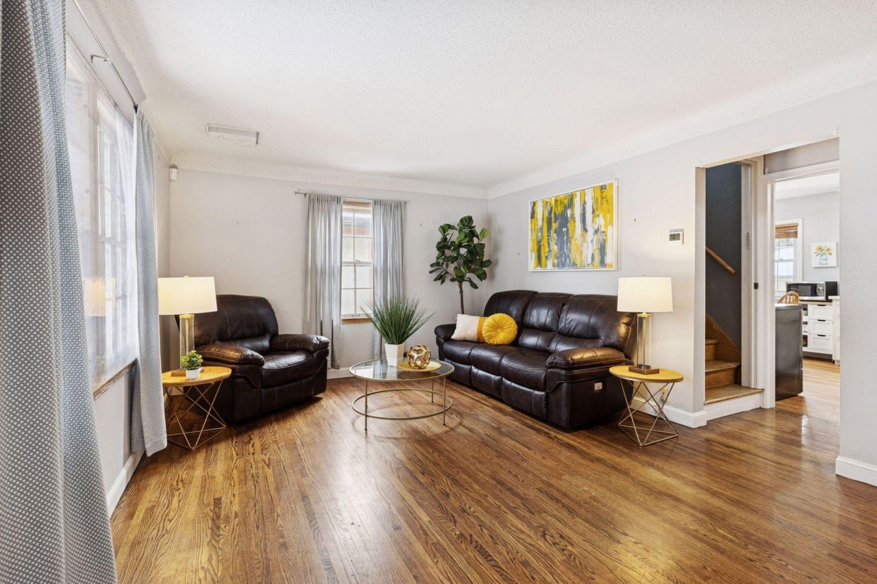 Charming and functional 3BR/1BA story-and-a-half home offering 1,672 finished sq ft of flexible living space. Bright main level with hardwood floors, spacious living room, and two main-floor bedrooms. Kitchen features stainless steel appliances. Upper level includes a private primary retreat with bonus den/flex space?ideal for office or sitting area. Unfinished lower level offers potential for 2 additional bedrooms and a full bath to build equity. Updates include new water heater, concrete steps, and fencing. Detached 1-car garage, .12-acre lot, built in 1946. Great opportunity with room to grow.