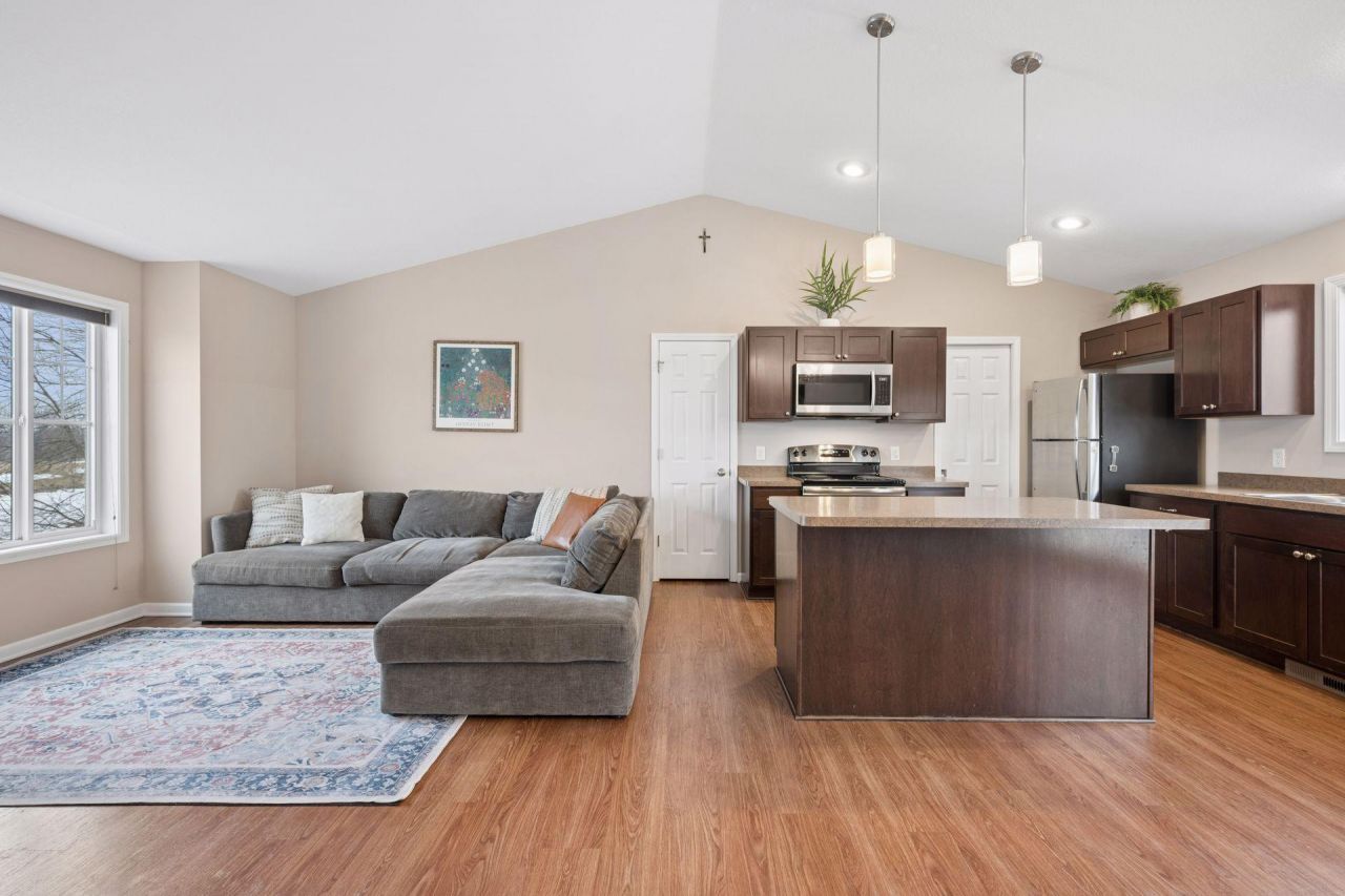 Move-in ready home in the heart of Waverly, just 30 miles west of Minneapolis! Tucked at the end of a street, this property backs up to a serene pond and open grassland. Step inside and the main living space opens immediately under soaring vaulted ceilings, connecting a generous living room to a well-appointed kitchen featuring a center island, rich espresso cabinetry, low-maintenance flooring, and a full stainless steel appliance package: range, microwave, dishwasher, and fridge all included. It's a turn-the-key-and-start-living situation. Upstairs, all three bedrooms are tucked away from the main living area, including a spacious primary suite with a walk-through bath. The walkout lower level is a blank canvas with full insulation, mechanicals, and a slider door opening directly to the backyard. Whether you're envisioning a family room, home gym, fourth bedroom, or all three, the bones are ready and the equity opportunity is real. Outside, the private yard is set up for both play and relaxation. The oversized two-stall garage offers room for vehicles plus serious storage. Enjoy nearby Big Waverly Lake (recreational), parks, community trails, and more. If you've been waiting for the right combination of value, privacy, and quality of life ? this is it.