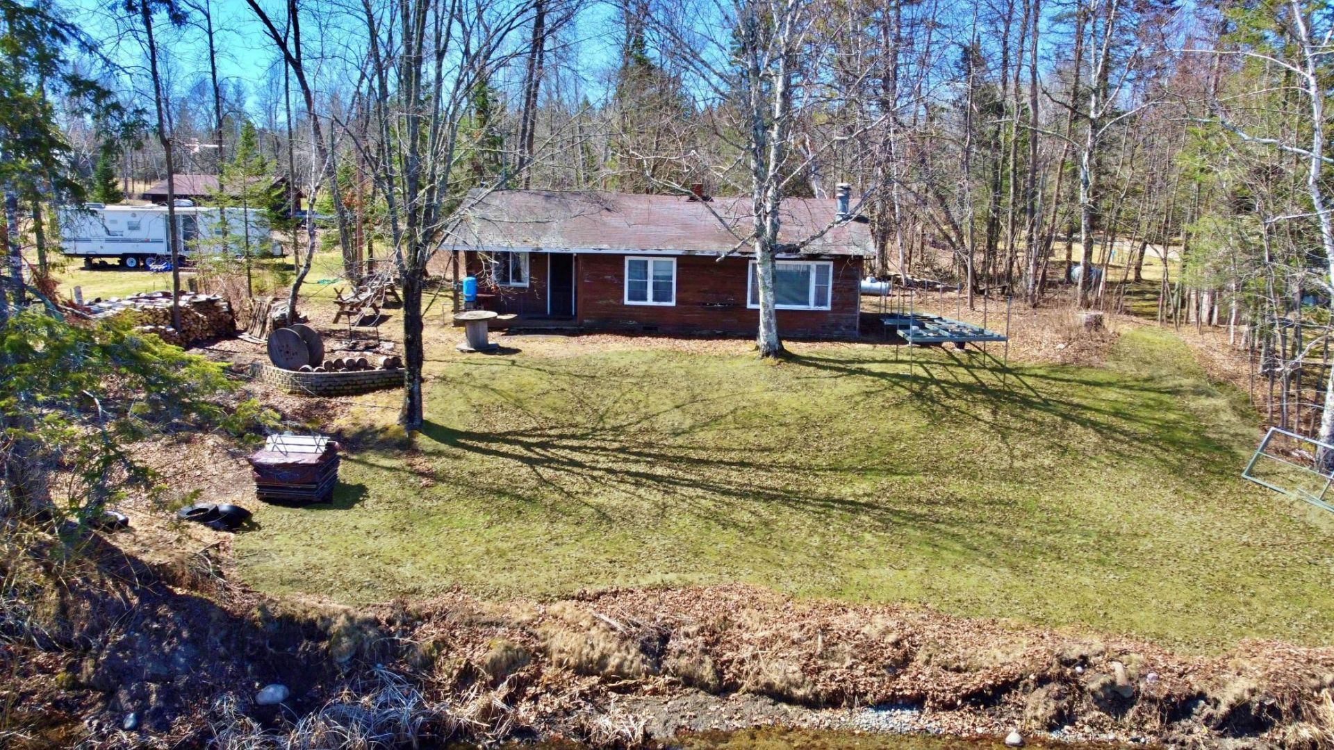 Escape to the charm of lakeside living with this rustic 2-bedroom, 1-bath seasonal cabin set on over half an acre along the shores of Esquagamah Lake. Perfectly positioned to capture panoramic water views both inside and out, this property boasts 100 feet of level shoreline?ideal for easy access to the lake and all your outdoor activities.Nice bright floor plan with lake views from almost every room. Brick wood burning fireplace to accent the living room and supplement heat if needed. There is also a wood burning stove on the lake side porch where you can escape the elements after a long day swimming and fishing on the lake.The cabin offers a cozy, inviting retreat with classic rustic appeal and lots of charm and turn-key ready . . . what you see is what you get with this little gem. All you need to do is unpack the family!An oversized detached one-car garage provides ample space for storage, tools, or recreational gear. The expansive grassy yard creates a perfect setting for gatherings, outdoor games, or simply relaxing and taking in the peaceful surroundings.Whether you're looking for a weekend getaway or a seasonal retreat, this property combines privacy, natural beauty, and prime waterfront access.