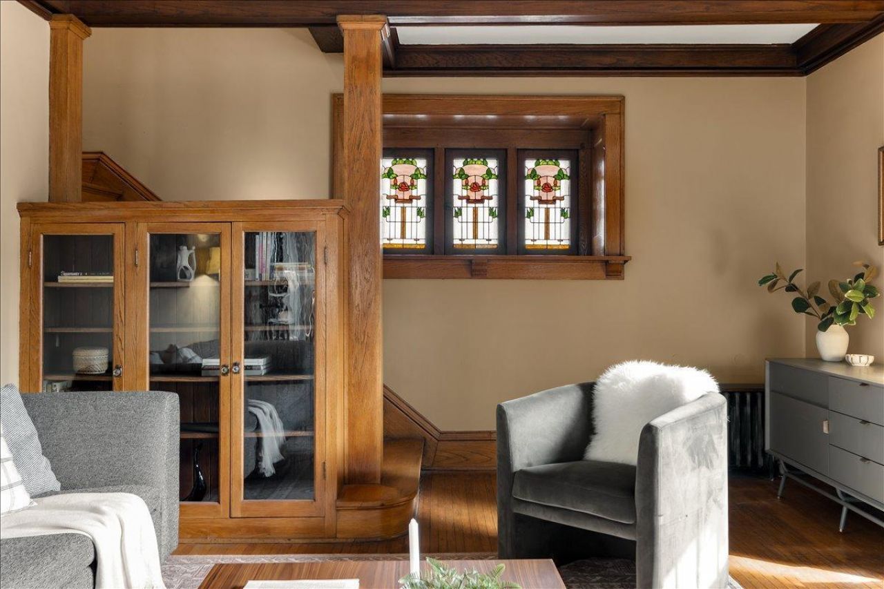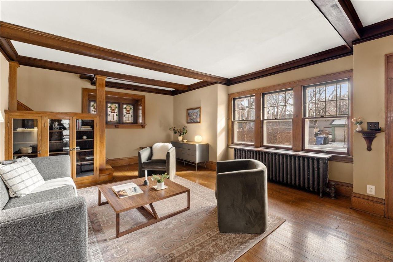 This gorgeous home is filled with craftsmanship and character at every turn: hardwood floors, box-beam ceilings, so many built-ins, wall sconces, chandeliers, and french doors. Every pantry drawer is purposeful, and each stained glass window tells its own story.Warmth flows through the living room, cozy den, and into the quintessential Powderhorn patio made for long summer evenings. The regal dining room impresses, while the kitchen is a true workhorse, customized with original character and serious functionality.Upstairs, the layout is airy and versatile with three bedrooms, a sunroom, and a vintage bathroom made for leisurely pampering. The clean and partially finished basement offers a dedicated studio or private office.Enjoy peace of mind with a new roof, updated trim and gutters (all 2023), and a 6-year-old boiler, tuned up last summer. A short block from Modern Times Cafe and nestled in the heart of South Minneapolis. A home this layered with detail is something you feel the moment you walk in.