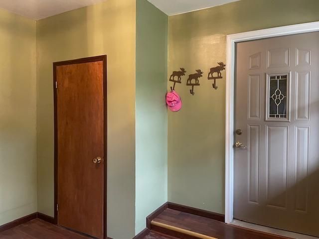 Corner double lot, 3 bedroom 2 bath home with attached 2 car garage, breezeway leading to the dining and kitchen. Several improvements throughout the years including vinyl siding and new windows. Large 32x24 heated insulated shed. Home was moved onto this lot late 1970's. Enlarged main floor bathroom in 2003 and moved stairway. Home has large rooms, some nice upgrades. There is some sheetrock that was never been painted on the 2nd level and the basement stairwell. Lots of room for improvements in the basement, the block has braces and comes with a warranty. Unique home on a large lot, room for a garden and comes with established asparagus and Honey Crisp apple trees.