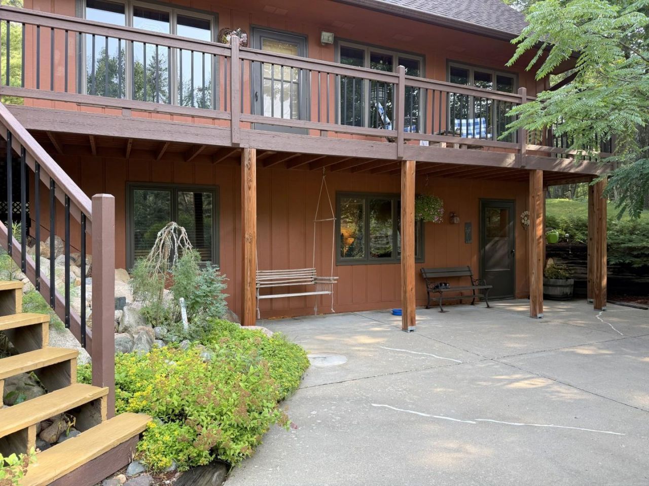 Picturesque woods surround this year-round haven. This well maintained 3-bedroom, 2-bath home offers approximately 2,080 square feet of comfortable, nature-inspired living. Tucked among the trees, it feels like a secluded treehouse getaway or a mountain chalet, blending rustic charm with modern comforts. With 6+ acres of privacy, the property is a sanctuary of peace, featuring lush woodland landscaping, a tranquil water feature, a cozy fire pit, and an expansive private deck and patio?perfect for savoring quiet mornings and star-filled nights. Inside, the main level welcomes you with an inviting open-concept design where the kitchen, dining, and living areas flow effortlessly. A wood-burning fireplace with a striking stacked-stone surround serves as a charming focal point, making every evening feel like a retreat. This level also includes a spacious bedroom and a newly remodeled ¾ bath, offering ease and comfort. The upper level features a bright and airy office space, full bath, and a charming bedroom, ideal for moments of inspiration or relaxation. The lower-level walk-out expands the living space with a cozy family room, a 3rd bedroom, utility/laundry room with ample storage space, plus patio access for effortless indoor-outdoor living. Outside, you'll find a 24x30 detached garage and paved driveway. Perfectly positioned near the Paul Bunyan and Heartland Trails, renowned fishing on nearby Leech Lake, and only 2 miles from the inviting amenities of Walker, this home isn't just a place to live, it's Northwoods living at its' finest.