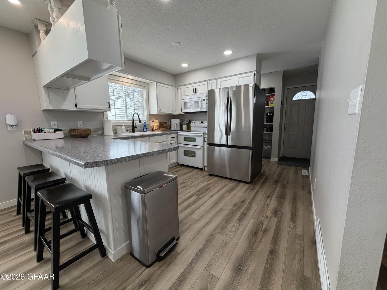 Take a look at this move-in ready 5 bedroom, 2 bathroom home with a den, located just North of Grand Forks on a 1-acre lot. The home has many recent updates including new flooring, fresh paint, updated interior doors, and beautifully redone bathrooms. Outside you'll find a heated two-stall garage and an oversized backyard shed for extra storage. The enclosed porch is perfect for relaxing and enjoying summer nights.